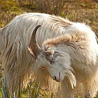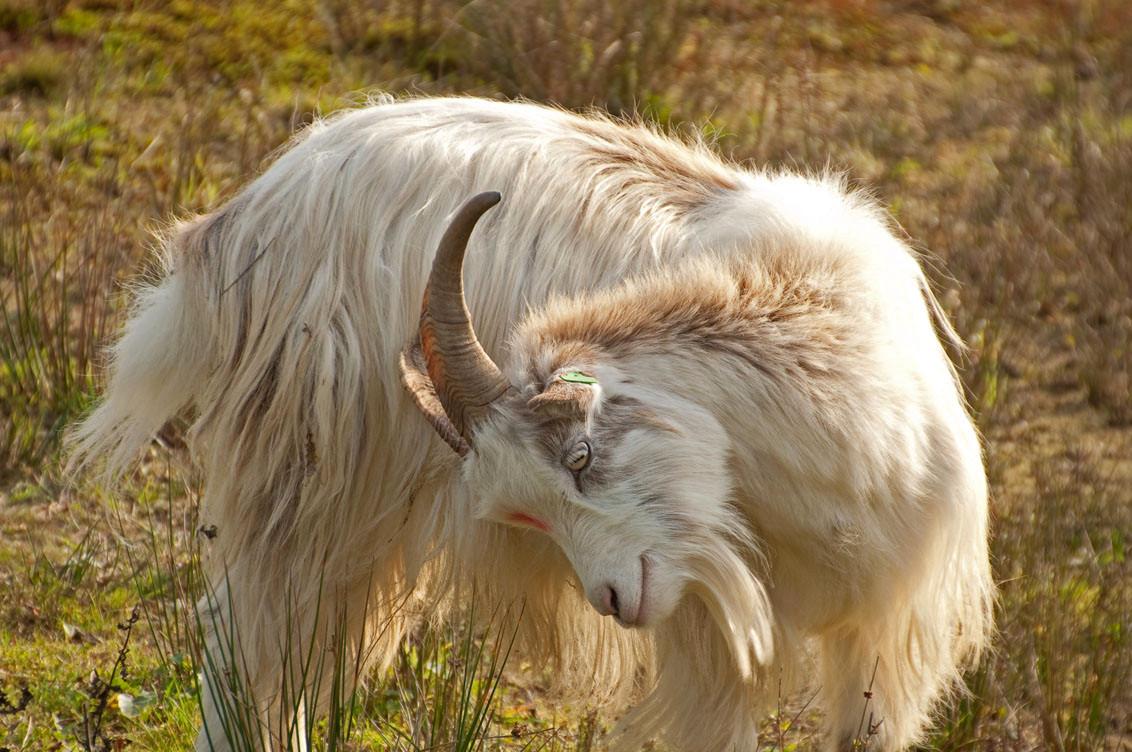Een witte langharige geit