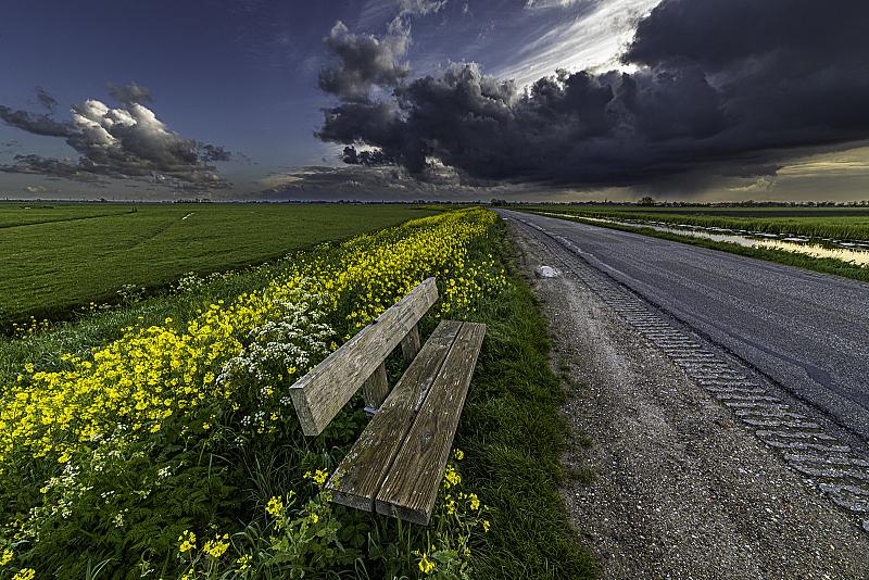 Ook zo'n plekje waar ik al -tig keer geweest ben , maar nog nooit een foto heb gemaakt. Wel aan de overkant waar de Kaagmolen staat , daar zijn 40 jaar geleden zelfs onze trouwfoto's gemaakt. En nu kwam ik aanfietsen en zag het licht, de lijnen en de prachtige lucht. April doet wat ie wil in één foto.