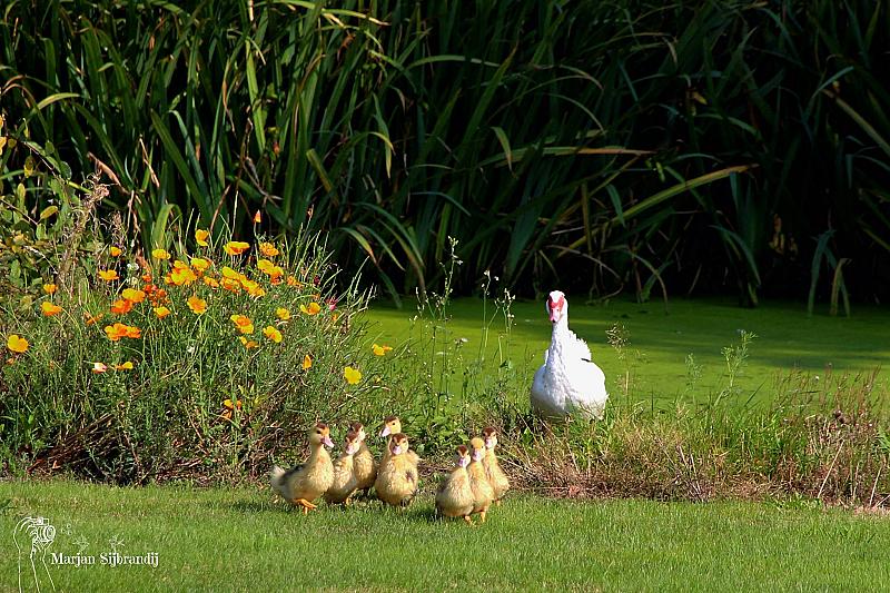 Prachtig gezicht. Dan moet je natuurlijk even stoppen om dit tafereel even vast te leggen. Maar liefst 9 kuikens.