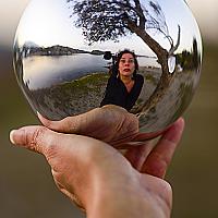 Zelfportret geinspireerd op schilderij 'Dali does Escher'. Gemaakt in de baai van het huis van Dali in Port Llegat. Een plek die in veel van zijn schilderijen terug komt. Gemaakt met timer (camera net te zien aan linkerkant van mijn hoofd).