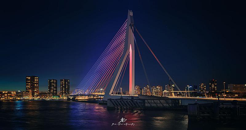 Nieuwe verlichting van de Erasmusbrug werd tentoongesteld afgelopen vrijdag te Rotterdam.