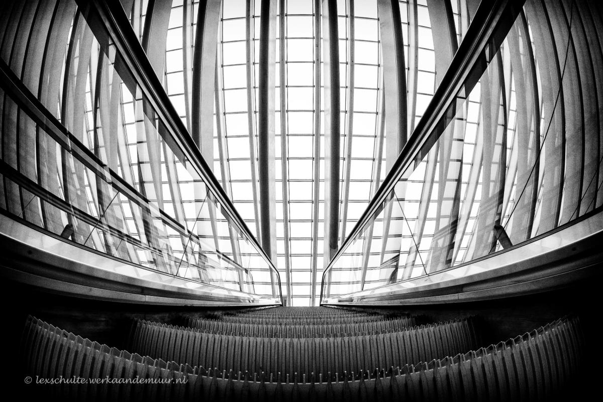 De roltrap op station Luik-Guillemins, dankzij mijn fisheye kreeg ik mooie vervreemdende uitstraling.
