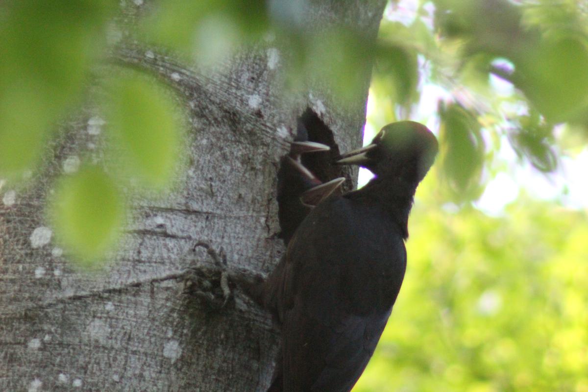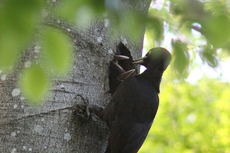 Volg al een tijd dit nest van dit Zwarte Specht paartje.