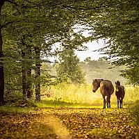 Ik kwam deze pony met veulen tegen onderweg. Ze stond daar samen met haar veulen op een heel mooi pad met zeer mooi licht van achteren