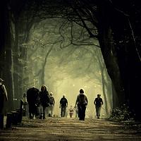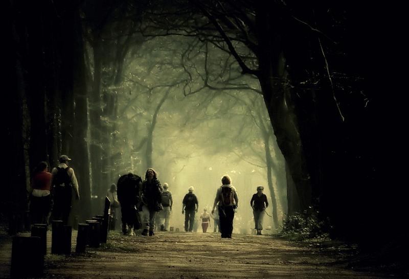 in het Corversbos liepen de mensen(en paard) naar het licht