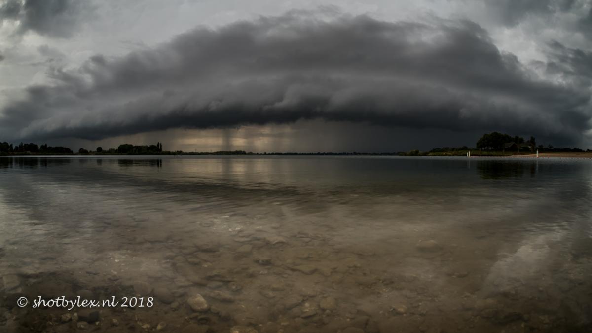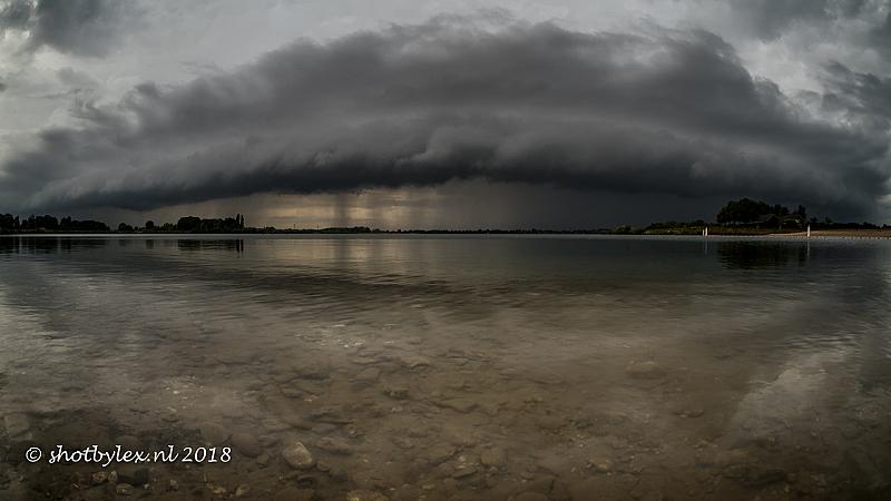 Een rolwolk gisteren boven de plassen bij ons dorpje. Erg indrukwekkend om zon wolken formatie op je af te zien komen...