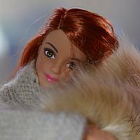 Made to move Barbie portret met fakefur kleed en winter trui.