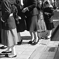 deze foto maakte ik jaren geleden in antwerpen maar hij blijft me fascineren. Deze groep mensen vormt een gesloten wereld waar de kijker buiten staat.