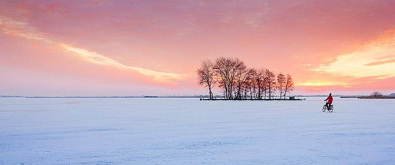 Fietsen op het bevroren Sneekermeer