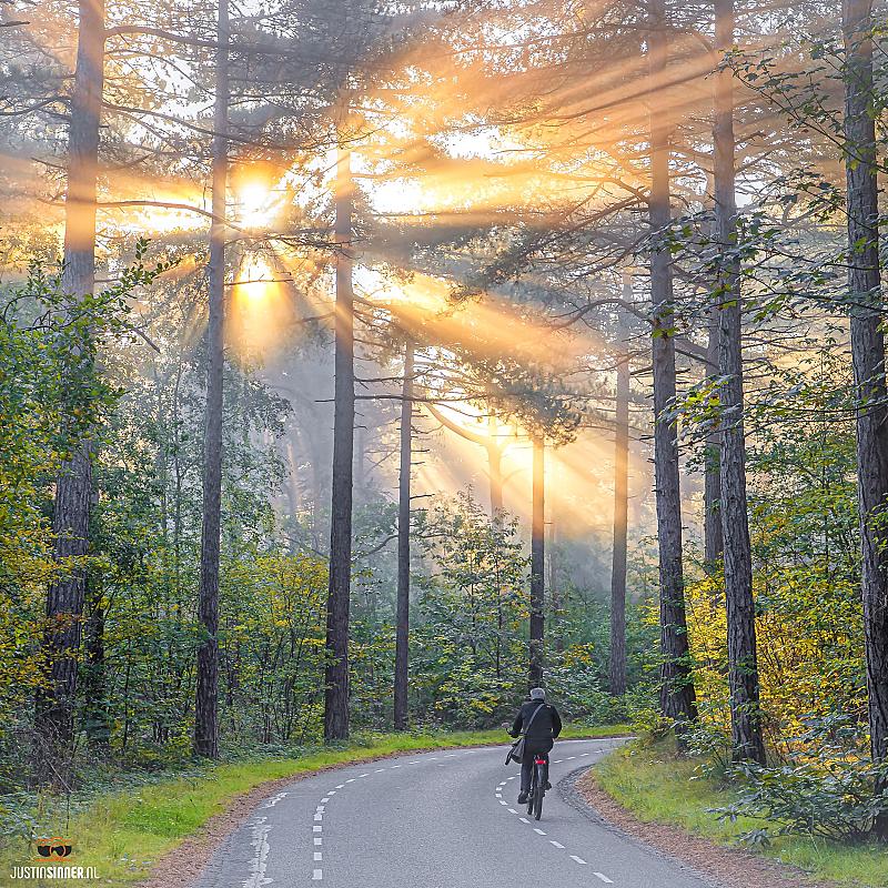 Op weg naar.... geen idee, maar hij heeft vast genoten van een prachtige herfstochtend op Texel 🙂 #Texel #herfst #justinsinner #fietser #fotografie #canonnederland #waddeneiland #bos #natuur
