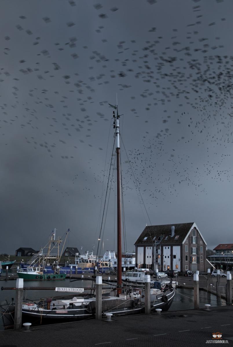 T leek gisteravond wel een thriller-filmset op de haven van Oudeschild. Naderende buien, zwermen met vogels, veel wind. 🙂#Texel #weer #justinsinner #fotografie #waddeneiland #haven #oudeschild #waddenzee