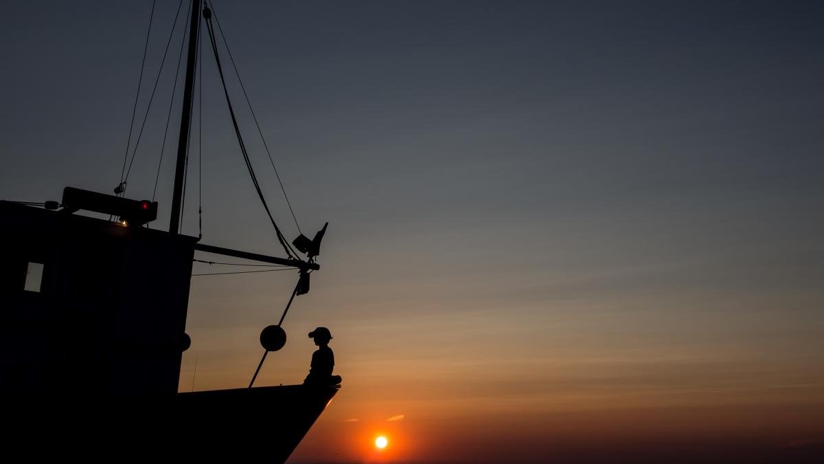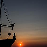 Dit knulletje zat zo mooi te genieten van de zonsondergang achter op het schip.