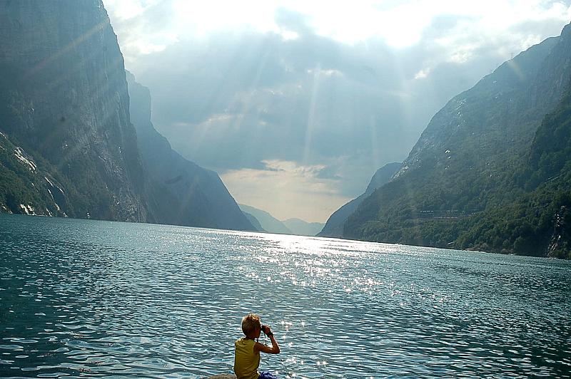 mijn zoon was nog druk op zoenk naar de zeehond die in het fjord om zwom!