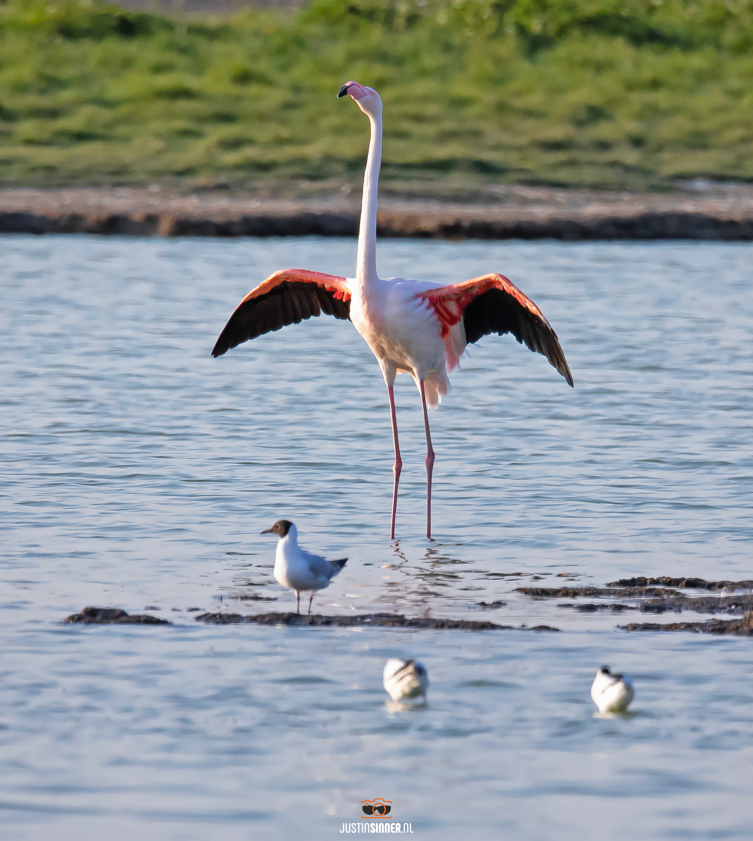 De "Texelse" Flamingo liet zich aan het begin van de avond prachtig vastleggen, klaar om een buiging te maken, wat een fotomodel! Delen mag :)