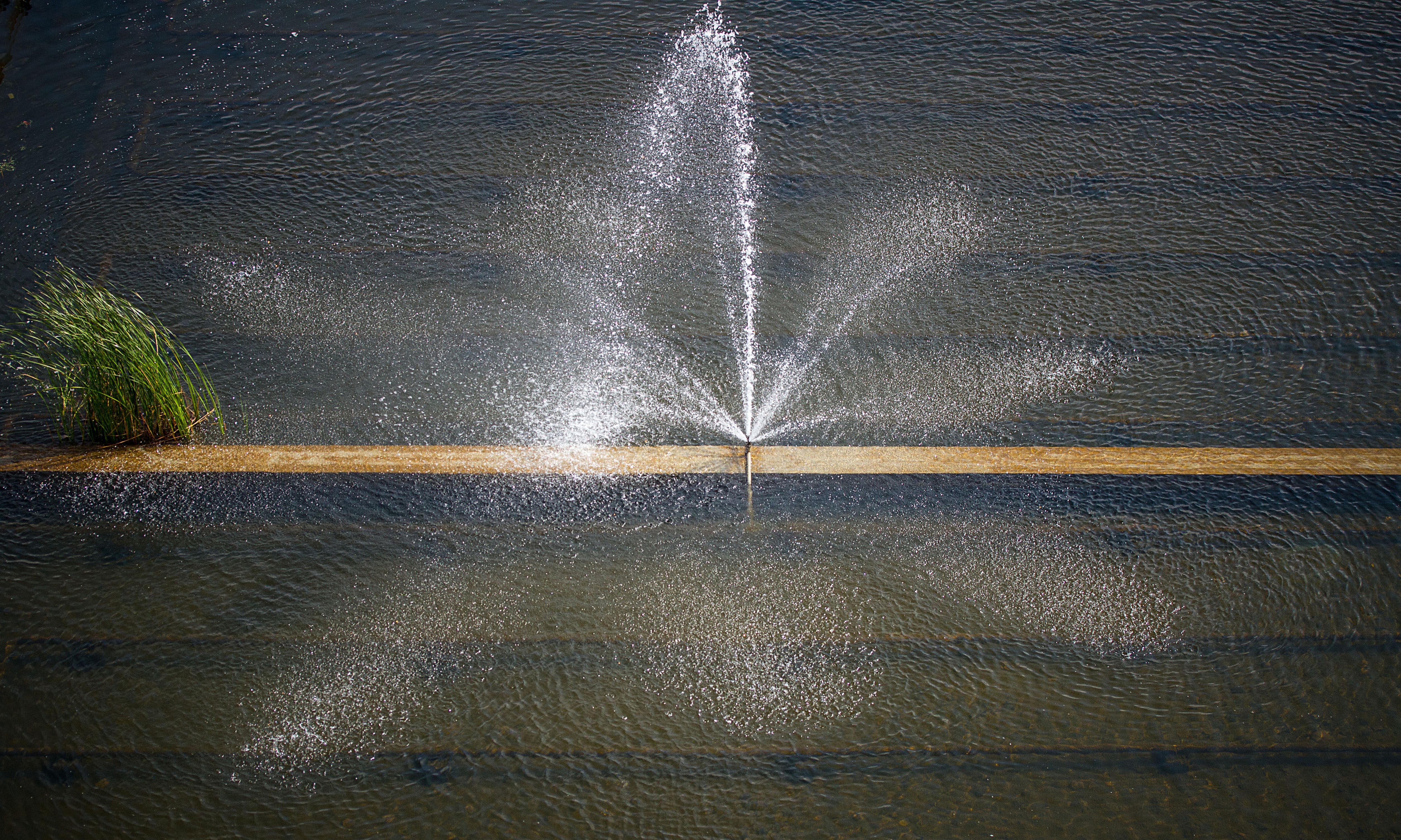 Het uitzicht vanaf Radiogebouw in Radio Kootwijk; de fontijn aan de voorkant van het gebouw