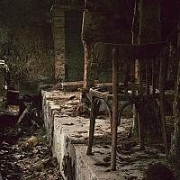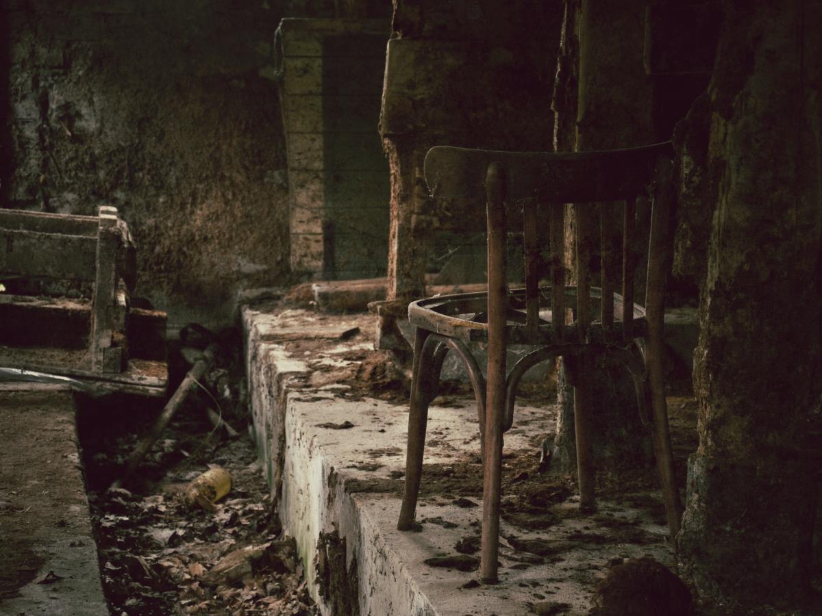 Een verlaten boerderij aan de rand van het bos. Weird.