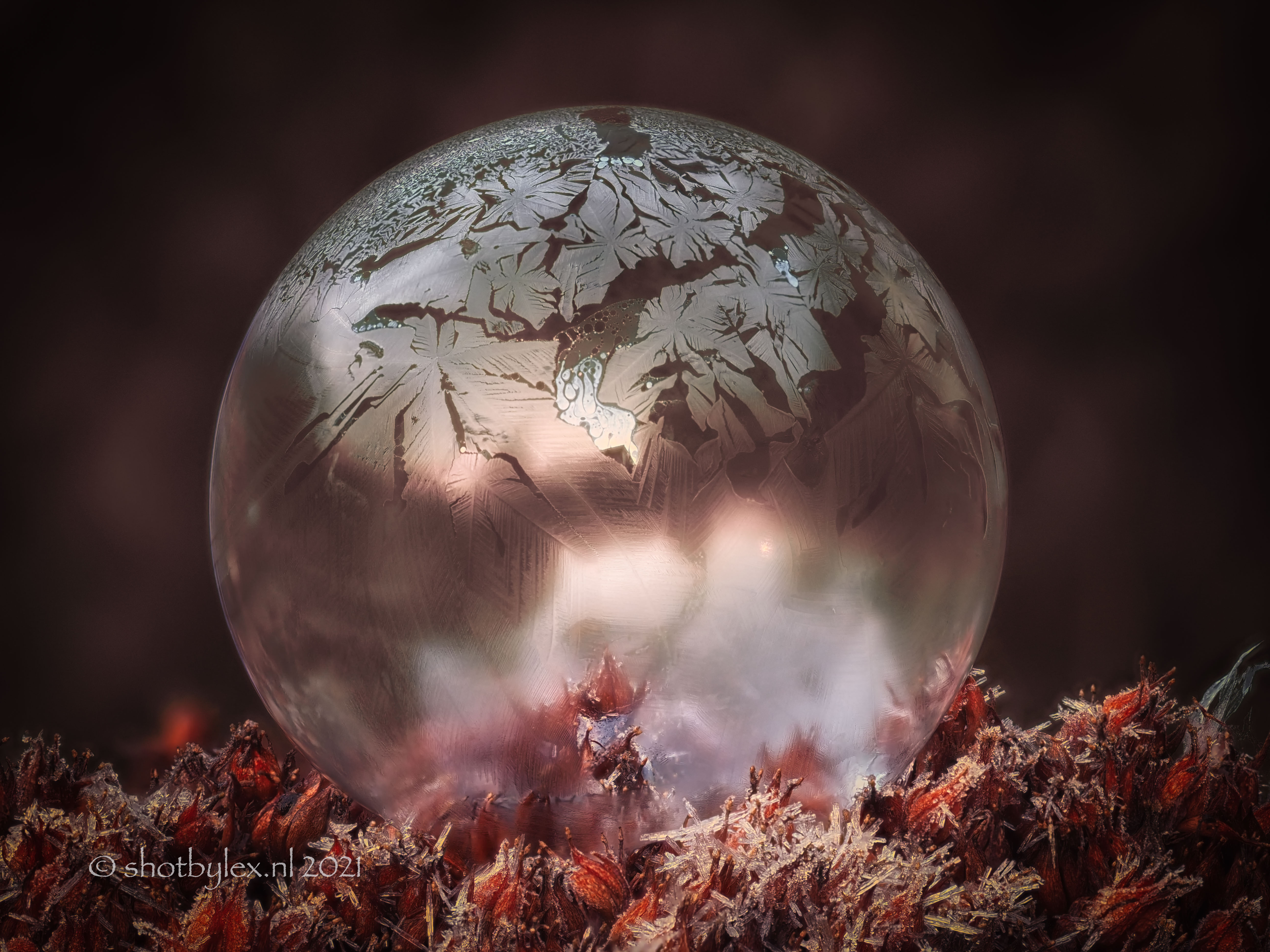 Eindelijk was het weer eens koud genoeg om de zeepbellen te laten bevriezen. Mooi hoe de natuur zijn eigen kunst maakt.
