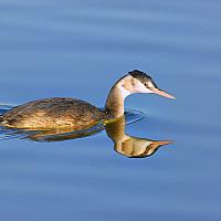 Fuut rustig dobberend op het water.
