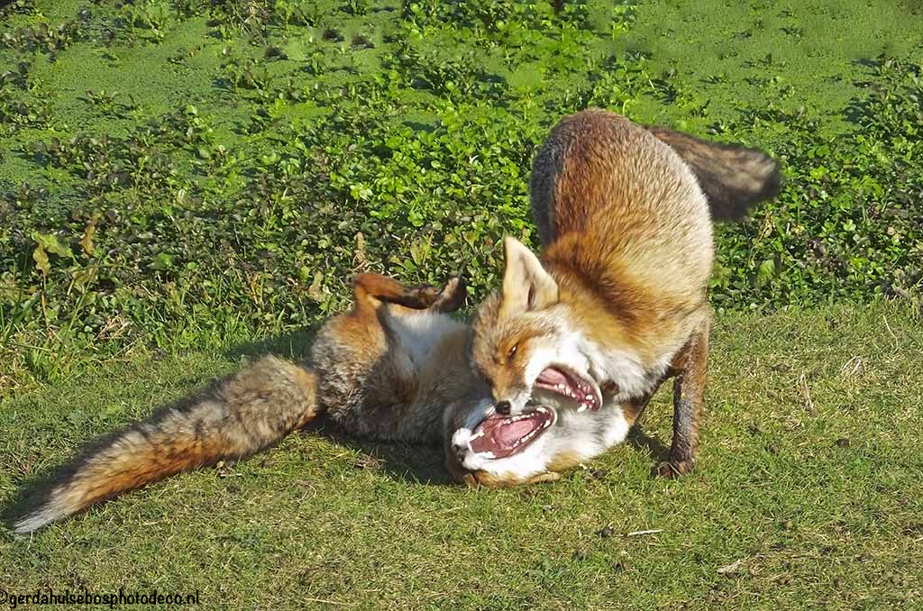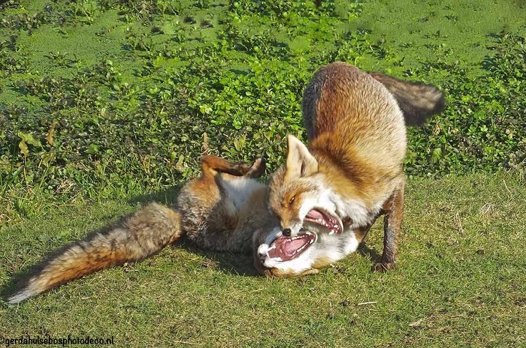 Spelende vossen in de Amsterdamse Waterleidingduinen.