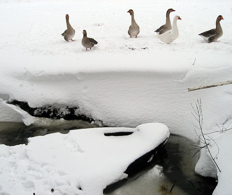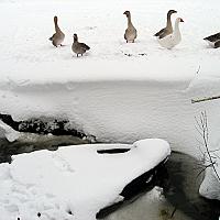 ganzen in de sneeuw