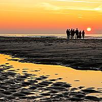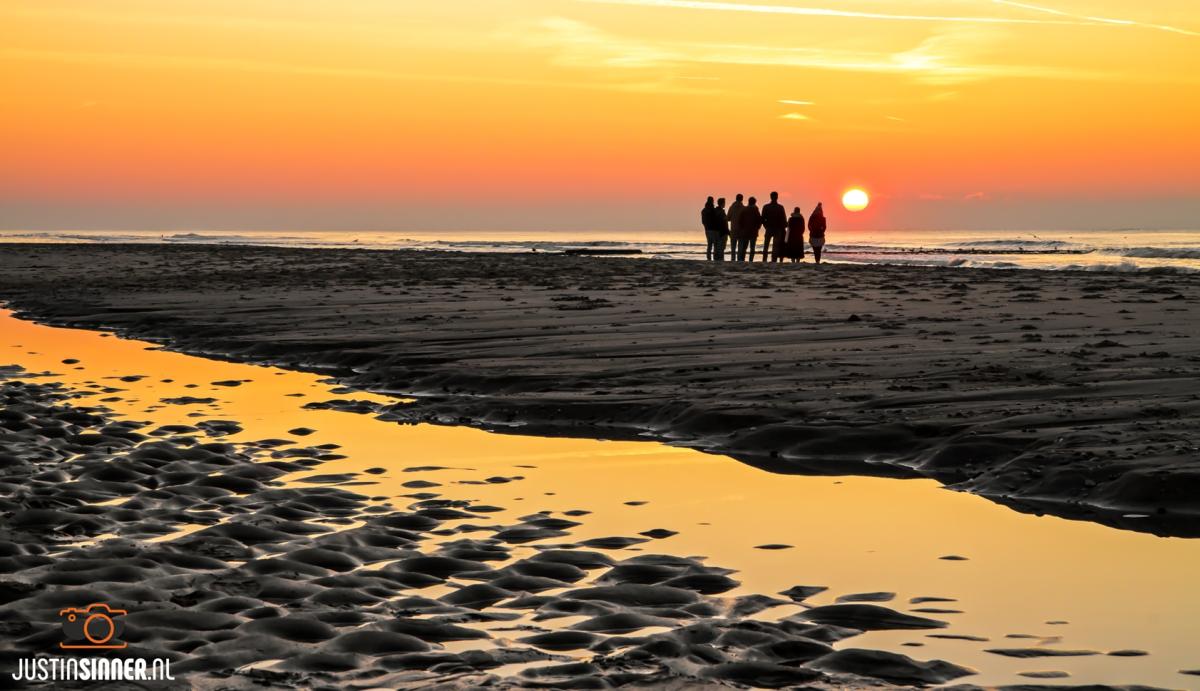 Deze mensen genieten van de mooi gekleurde zonsondergang op Texel