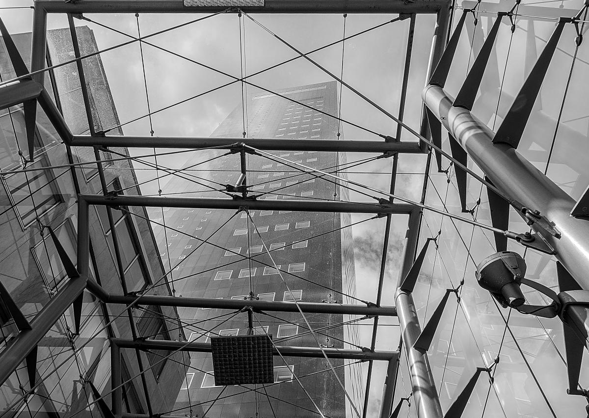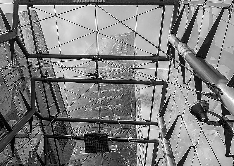 Omhoog kijkend door glazen overkapping