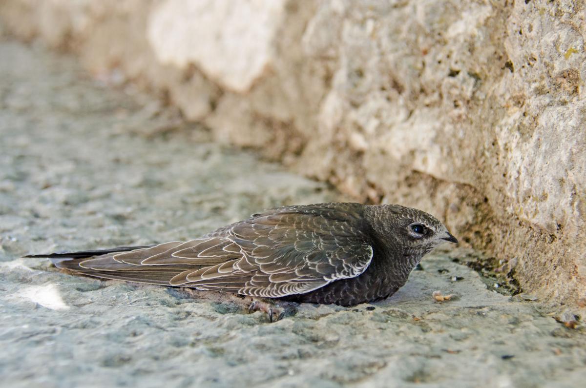 Dit zwaluwtje was uit het nest gevallen en lag op een parkeerplaats, heb haar een eindje verder in de schaduw op een bankje gelegd en kon toen deze foto maken