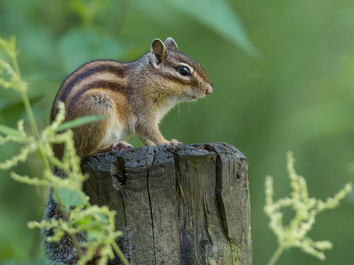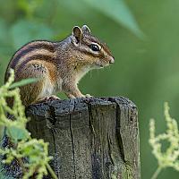 een gestreep eekhoorn op een paal(Zoniënwoud/België)