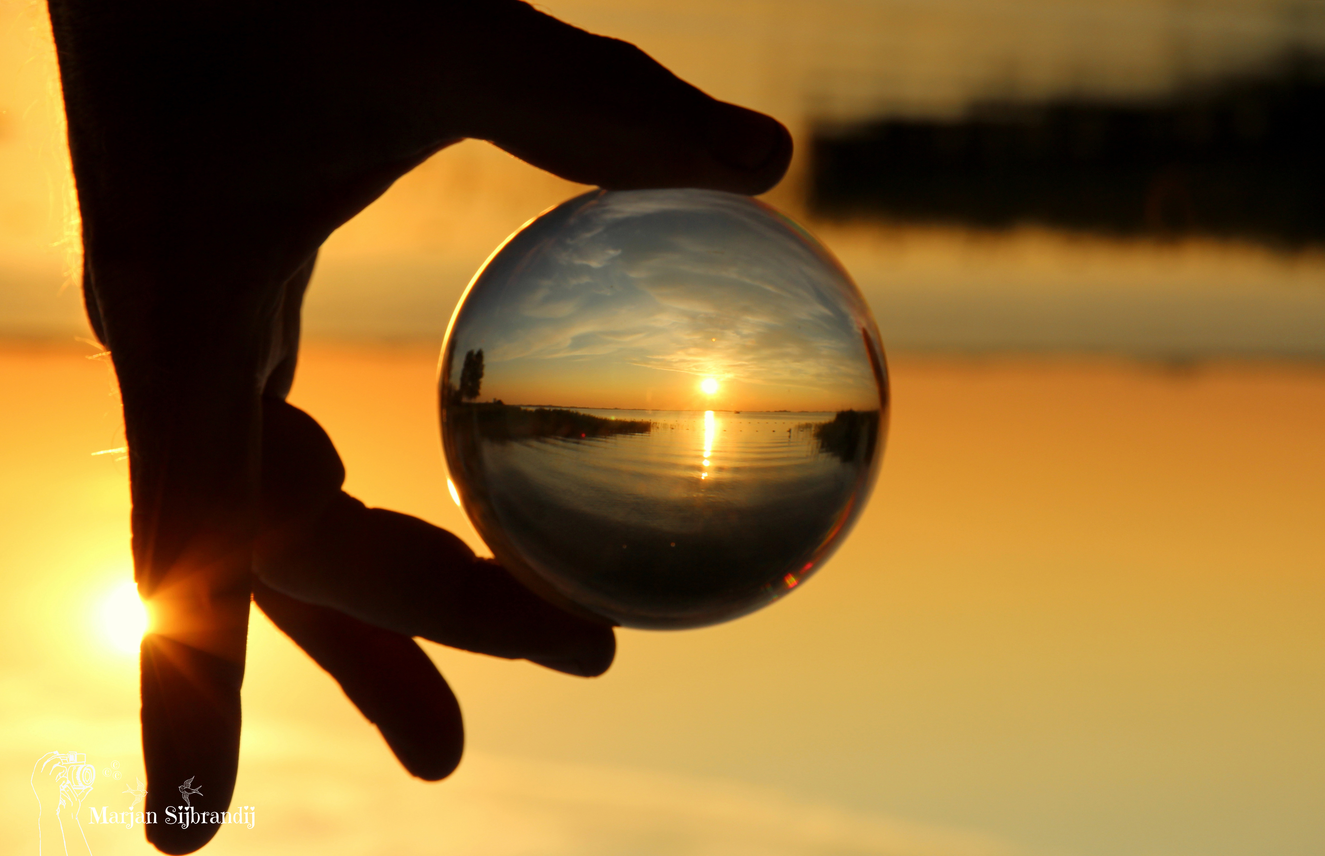 Genoten van de zonsondergang, viel nog niet mee om dit vast te leggen in de bol.