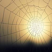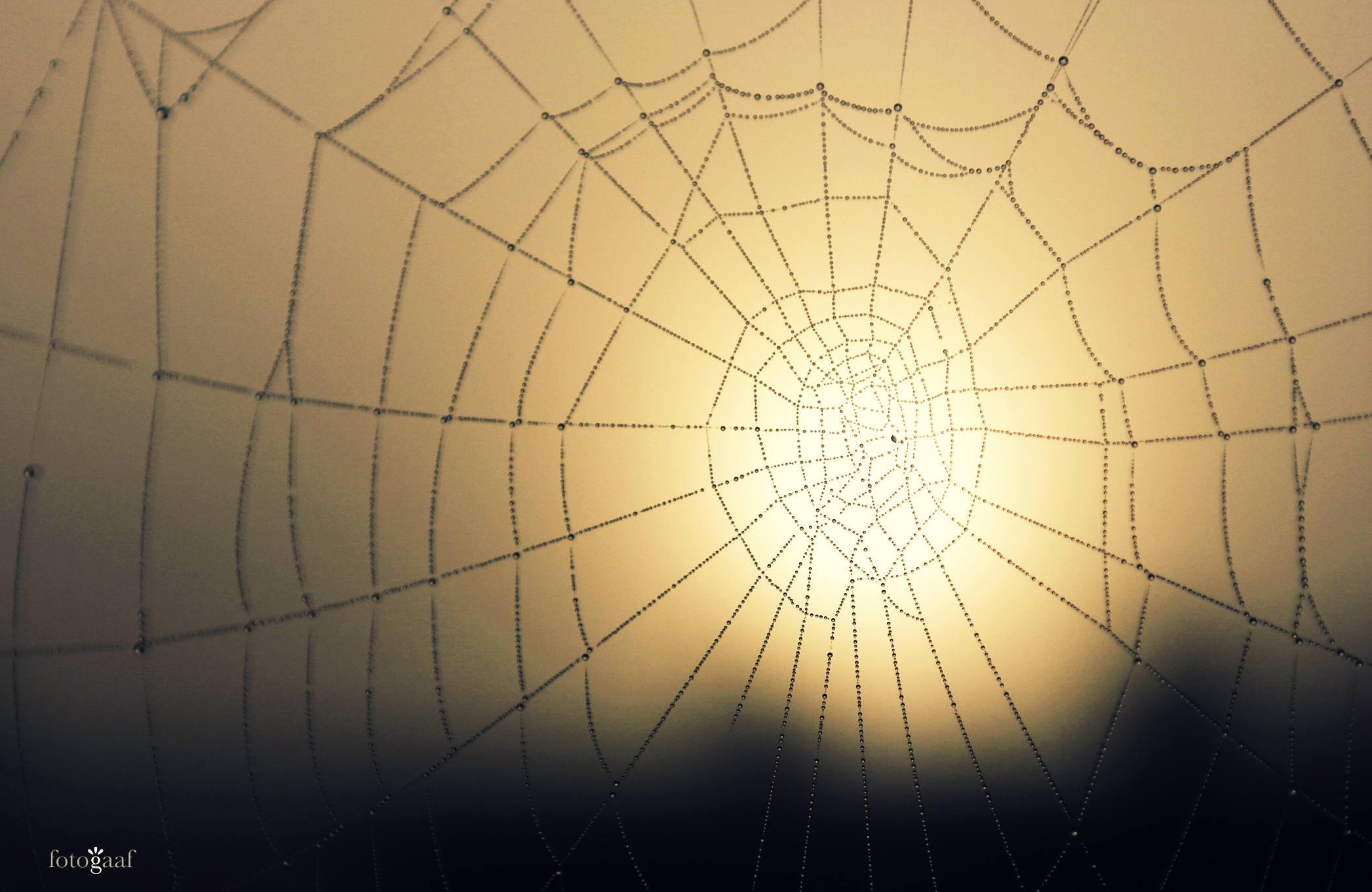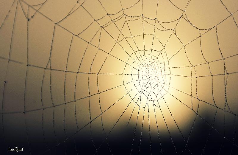 Het mistige zonnetje vanochtend gevangen in het hart van dit spinnenweb...