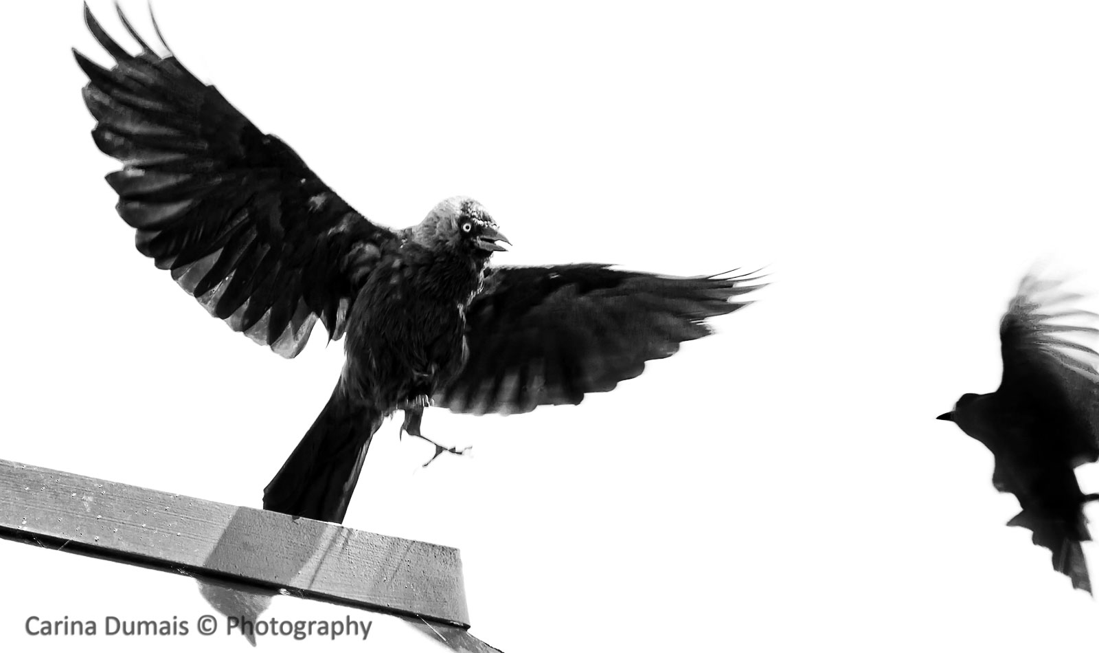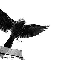 Een merel verdedigd zijn nest. In gevecht met een Kauw