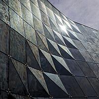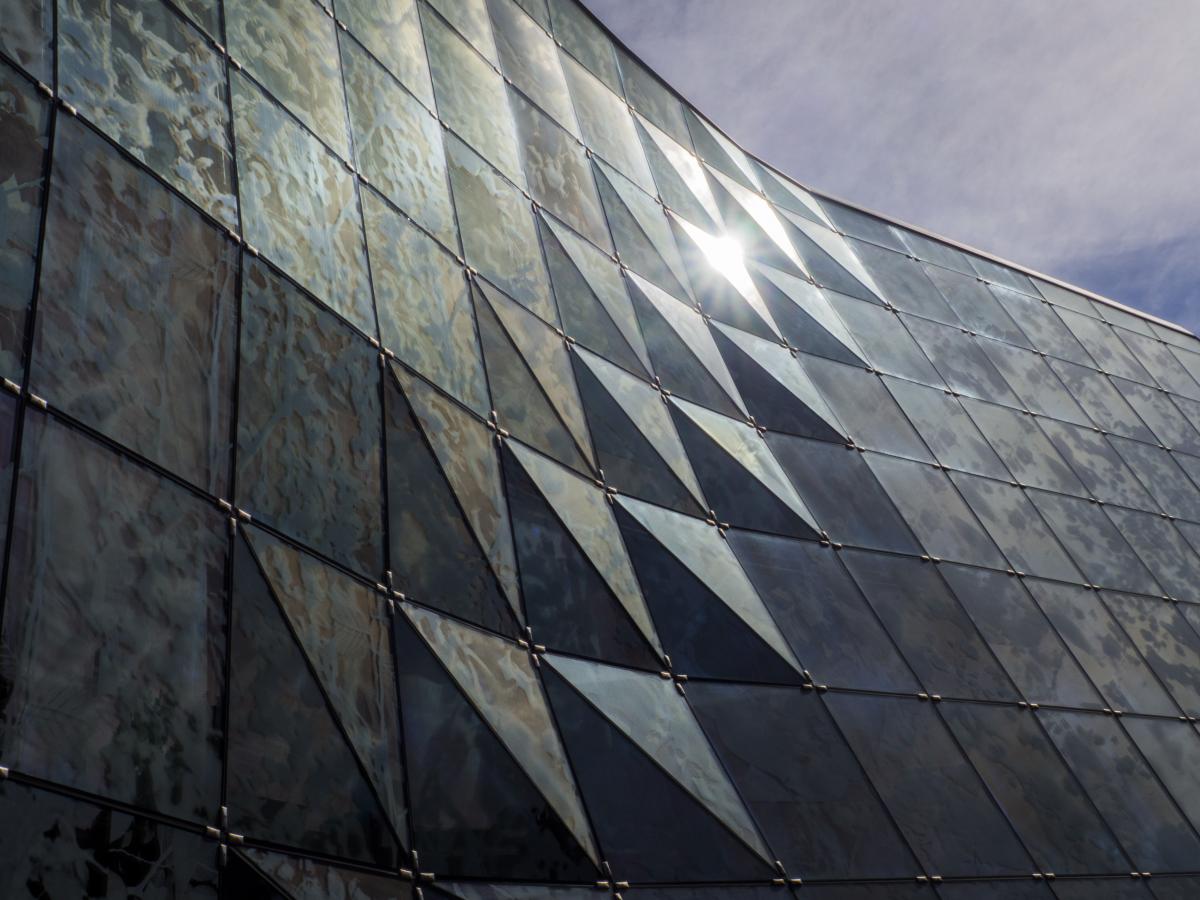 Een detail van het gemeentehuis in Alphen aan den Rijn, de zon zorgt voor een groot contrast en weerspiegel ook in 1 glazen ruit, doordat ik een klein diafragma gebruikt ziet je ook de zonnestralen, reflectie is niet te zien door het gebruik van een polarisatie filter.