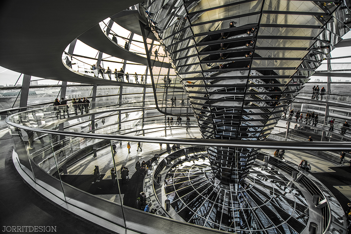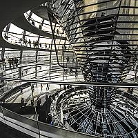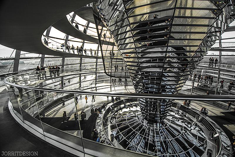 De koepel van de Reichstag bestaat voornamelijk uit glas.