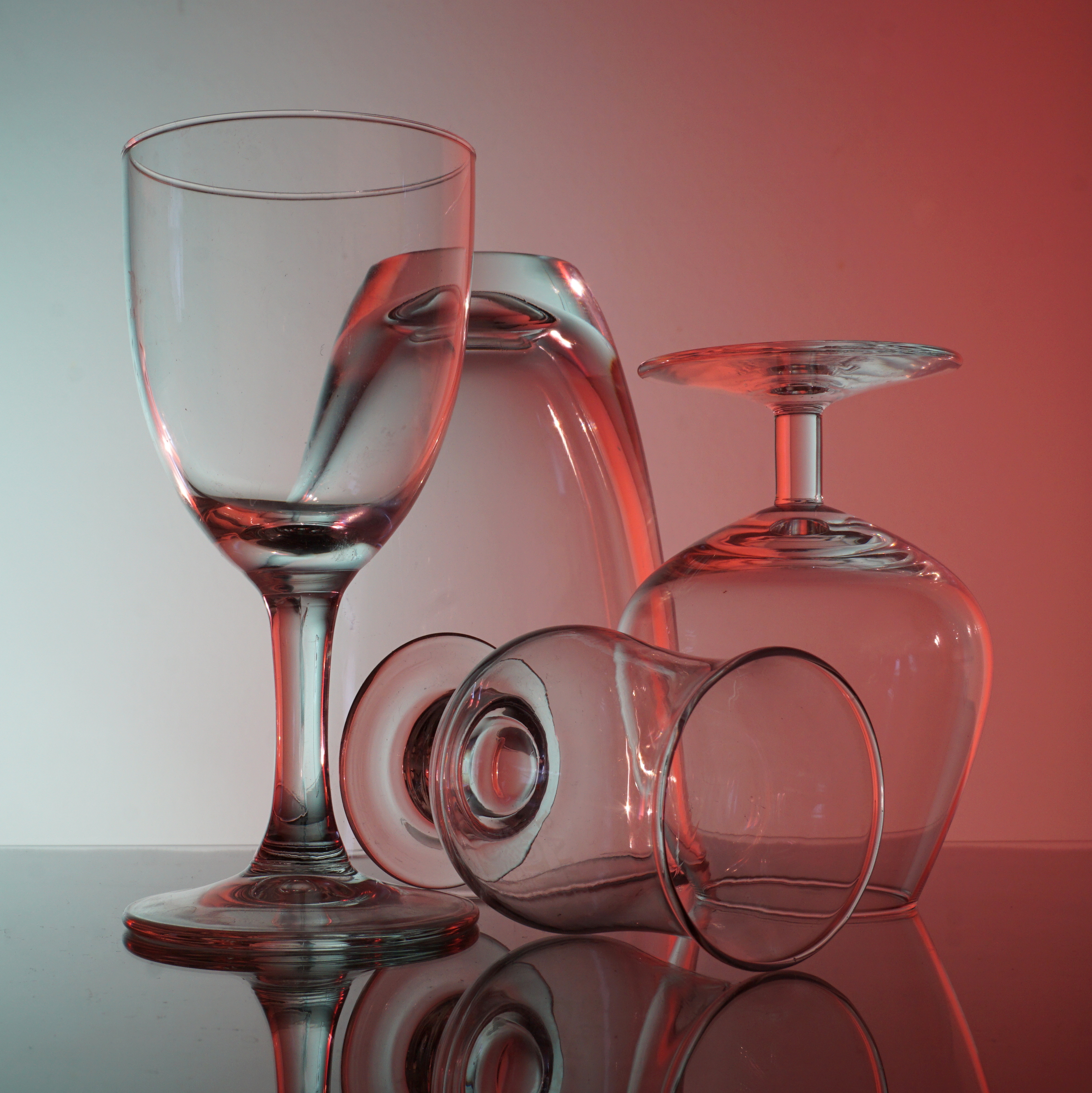 Stilleven van glaswerk, gemaakt binnen een opdracht van een fotocursus bij Erwin Hartsuiker, Volks Universiteit Alphen aan den Rijn (VUAL), januari 2018.