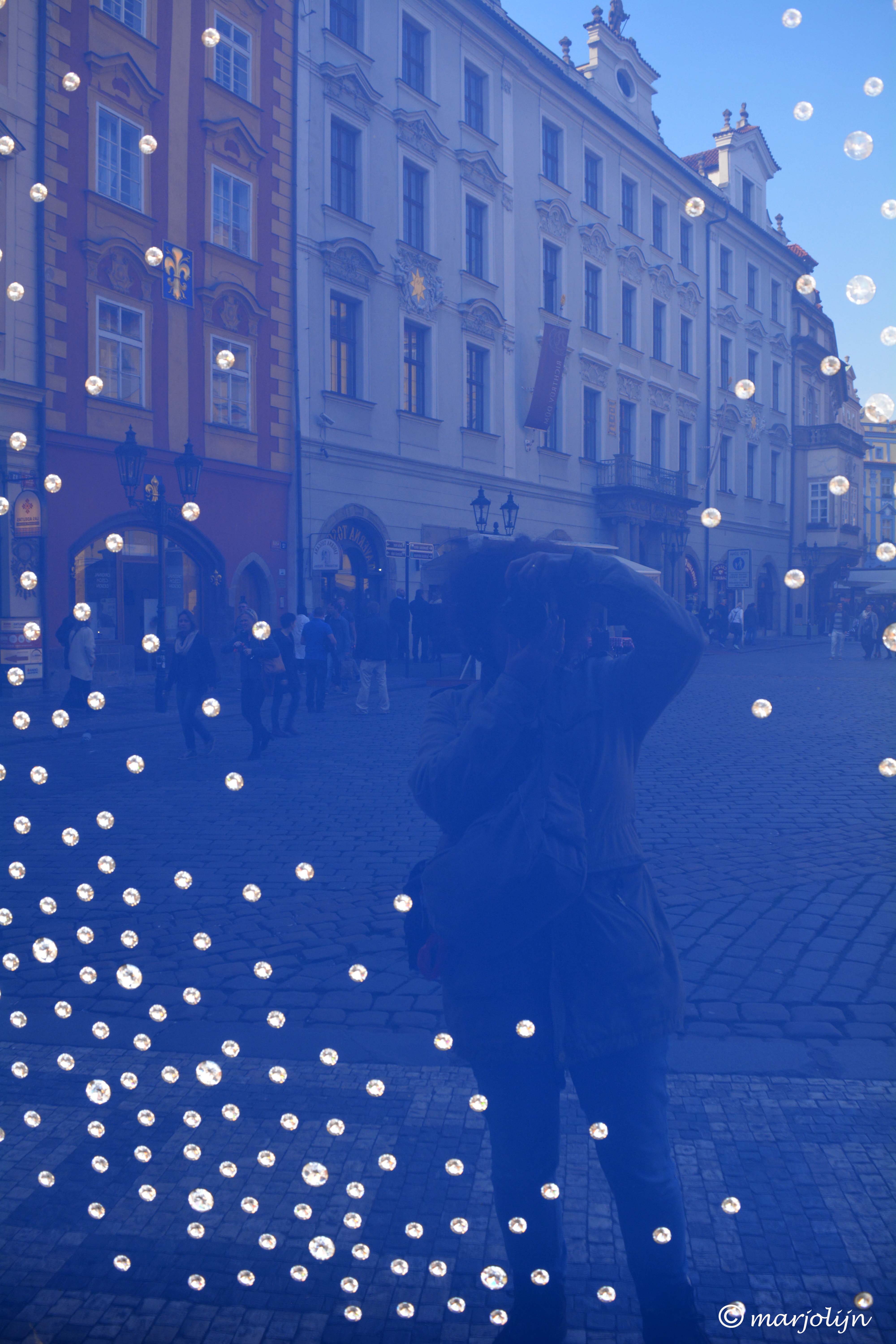 weerspiegeling in de winkelruit van de Swarovski winkel in Praag