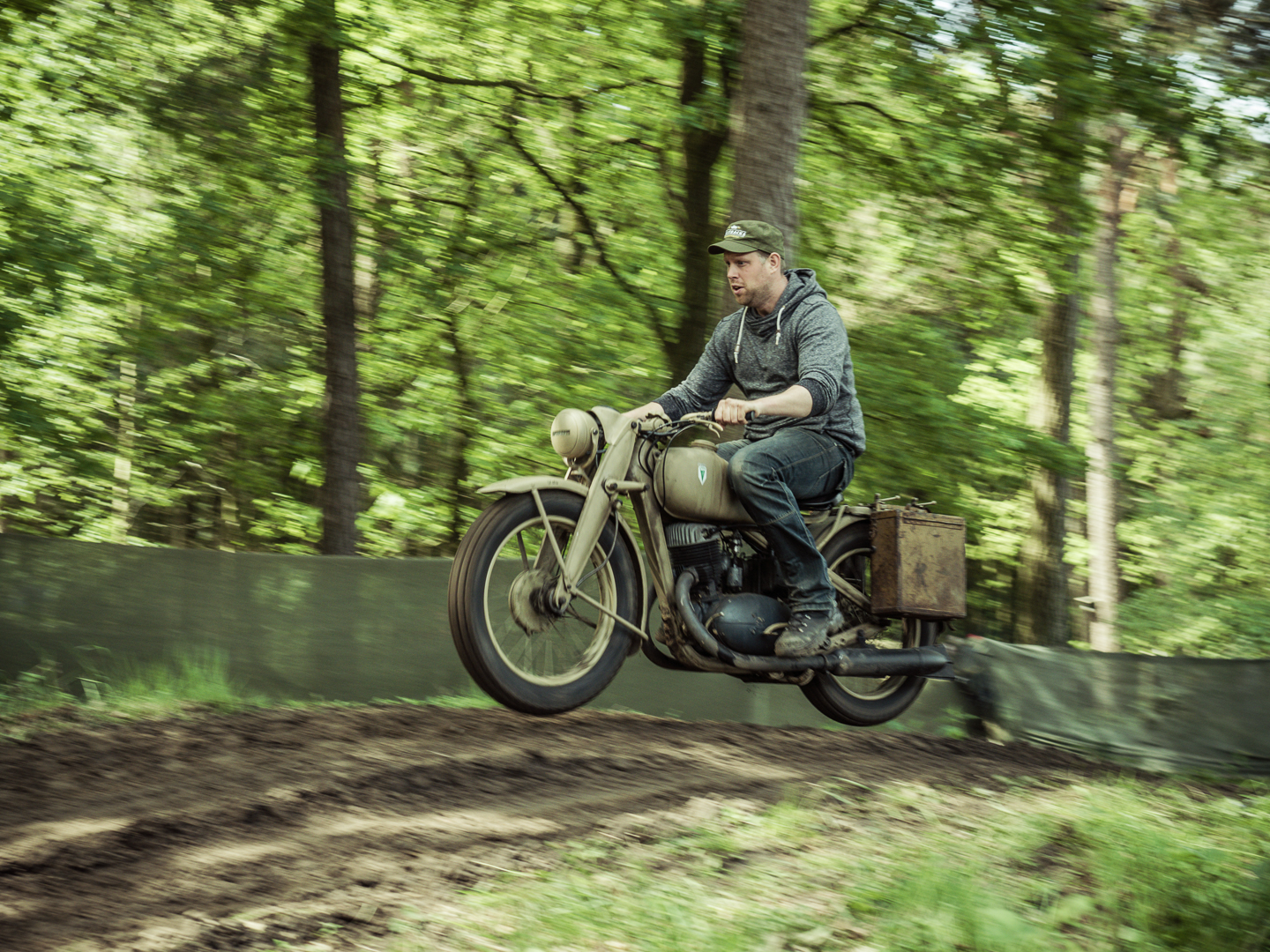 Militracks 2017, deze meneer was wel heel enthousiast met zijn 75 jaar oude motor...