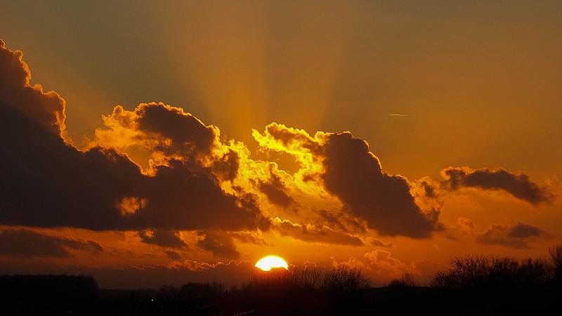 De zonnestralen komen nog net door de wolken en proberen het laatste stukje aarde nog te verwarmen....