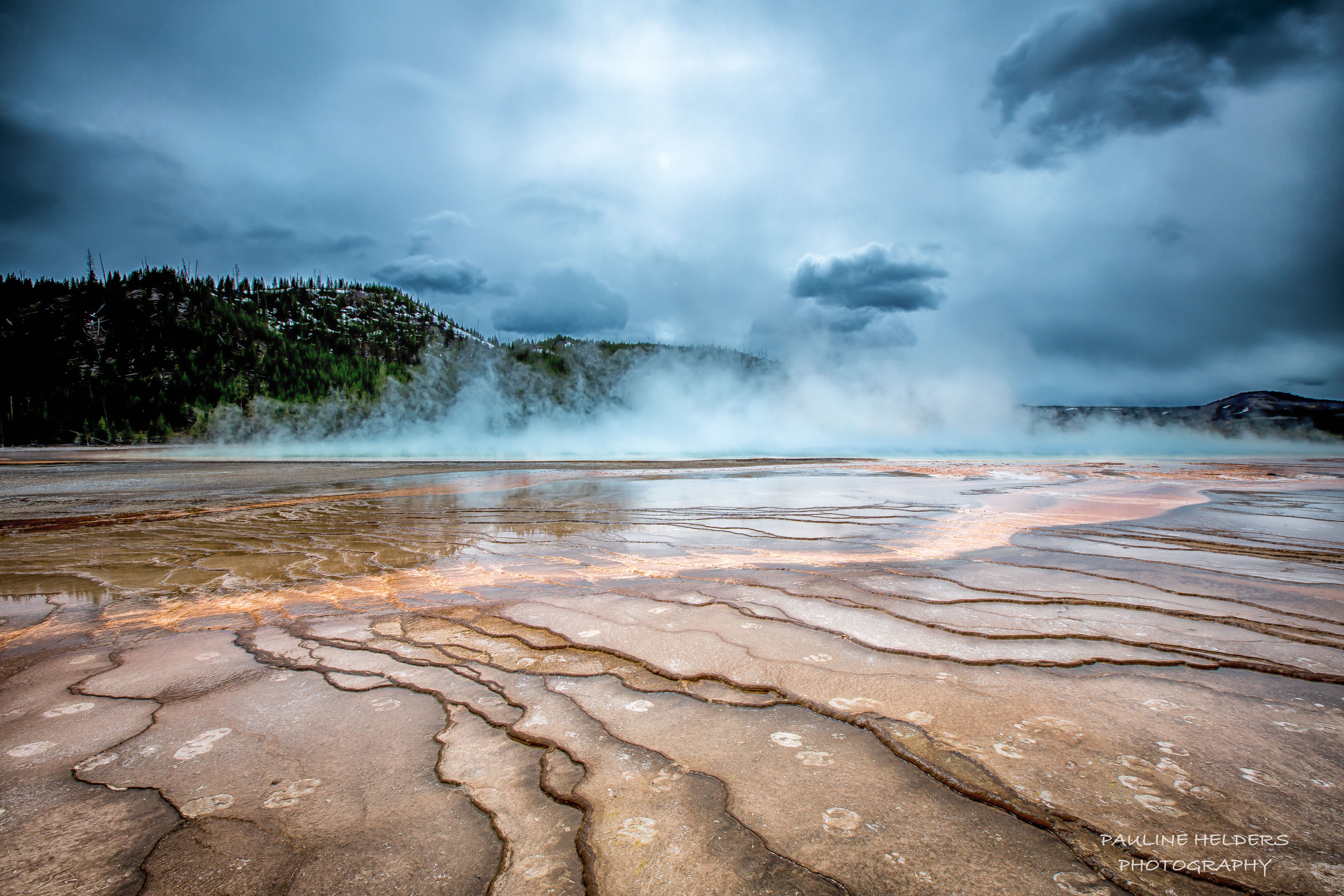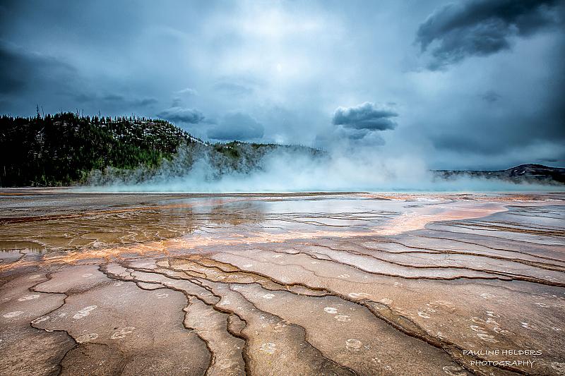 Afdrukken van bizon hoeven in dit wonderlijke landschap in Yellowstone National Park, USA