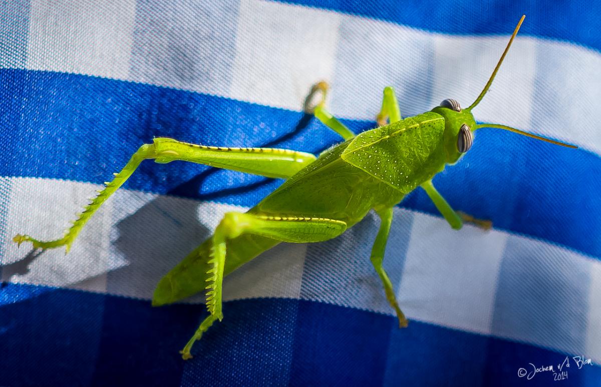Foto gemaakt met de Sigma 18-35mm ART. Toen we deze sprinkhaan zagen hebben we hem snel op de overhemd van mijn schoonvader gezet om zo een mooi kleuren contrast te krijgen. Hoewel de Sigma geen macro lens is kan dit objectief op een zeer korte afstand scherpstellen. Met een beetje bijsnijden in de nabewerking kom je tot "macro-achtige" resultaten.