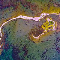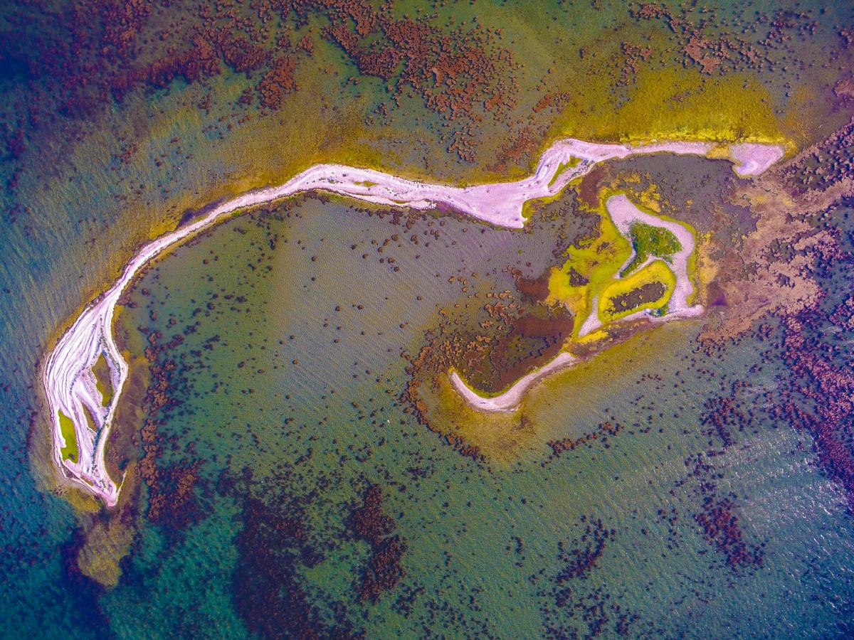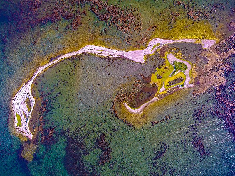 Op deze foto ziet u een klein eilandje en de bodem van het Grevelingenmeer nabij Ouddorp.
