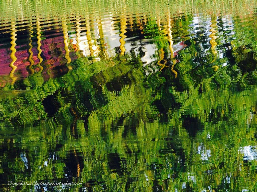 Golvend water geven de groene bomen aan het meer een impressionistiche sfeer.
