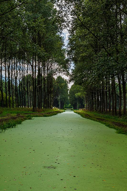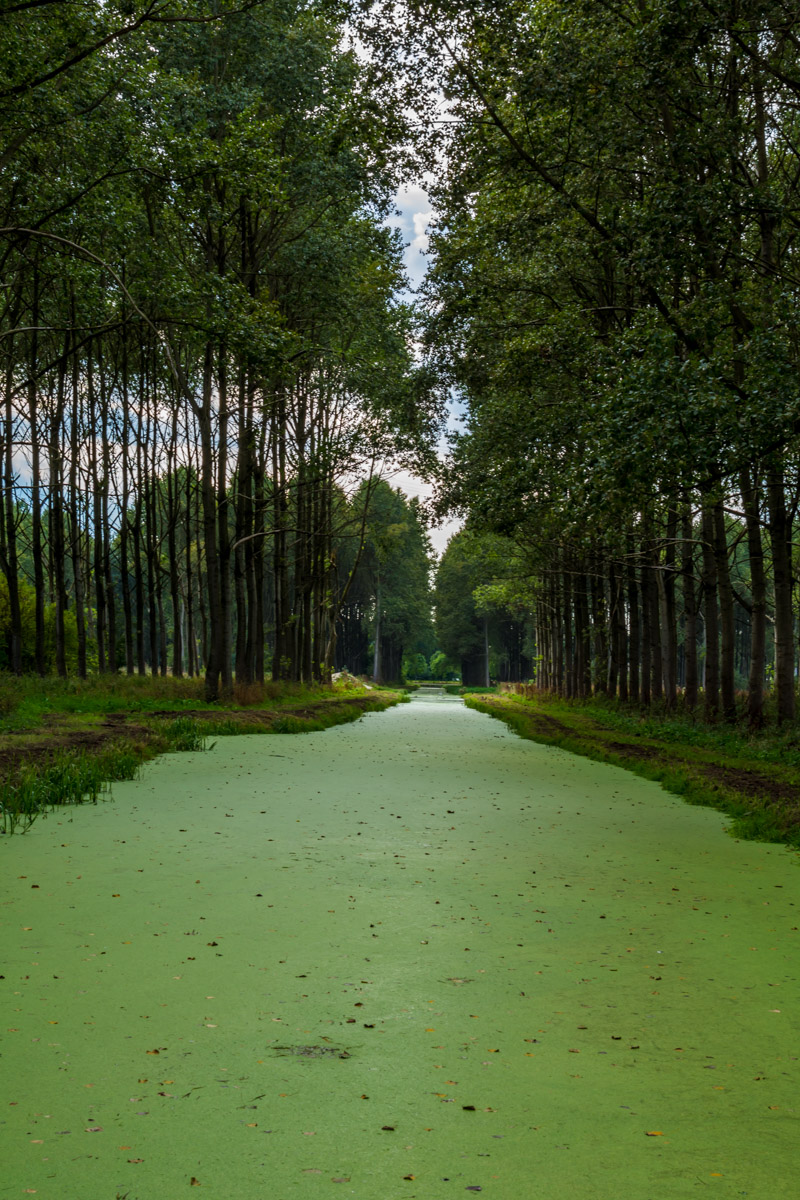 De sloot is bedekt met kroos.