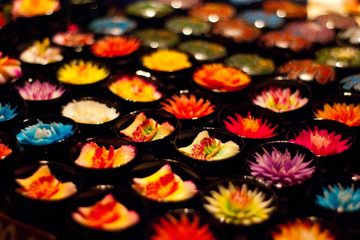 Zeepjes gesneden in de vorm van bloemen zijn een bekend fenomeen in Noord Thailand.