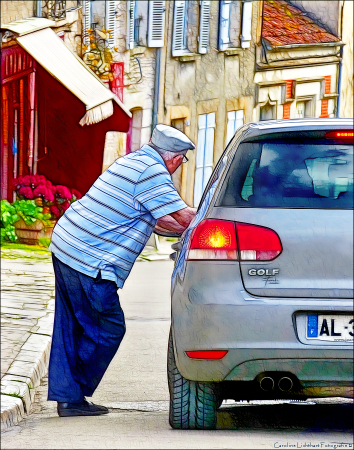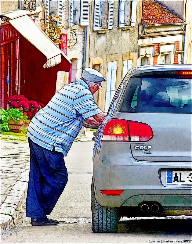 Lekker midden op straat eindeloos kleppen. In een oud Frans stadje kan het nog... :-)