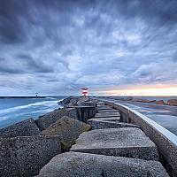 Het licht lijkt hier van de vuurtoren te komen maar het is toch echt het laatste zonlicht van de dag wat nog net onder het dikke wolkendek uit komt.