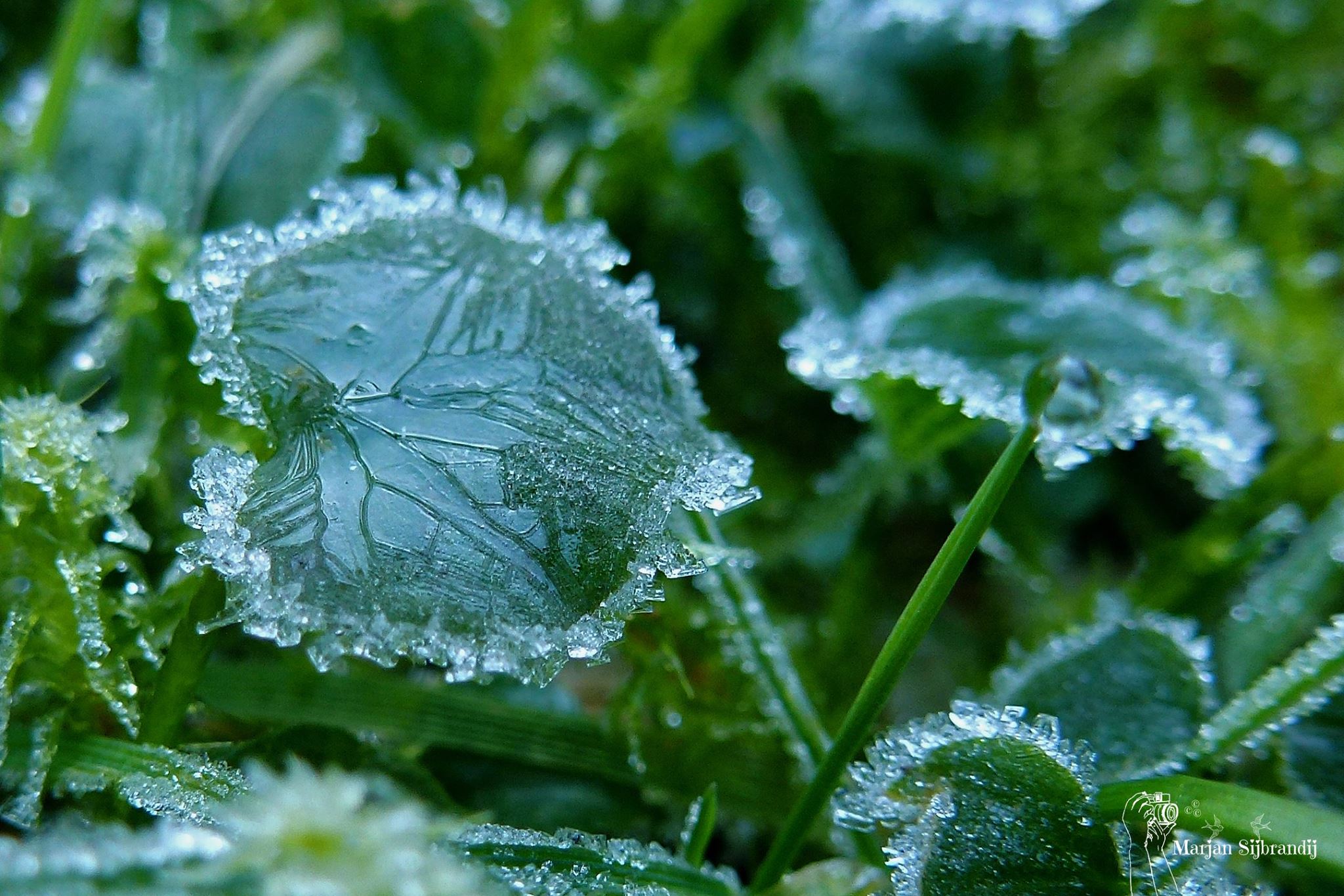 Zo mooi die bevroren hartjes in het gras.