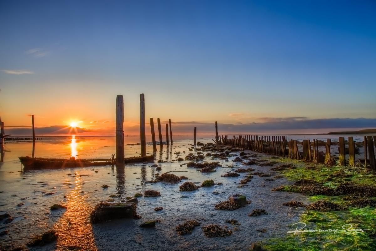 Met laag water kun je langs de dijk een mooie zonsopkomst zien en langs het strand de mooiste zonsondergangen.