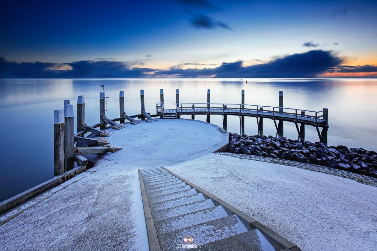 🇳🇱Havenhoofd in Oudeschild net voor zonsopkomst op een winterse ochtend. Het heeft heel licht gesneeuwd en het blauw in de lucht is prachtig! #Texel #justinsinner #waddeneiland #canonnederland #fotografie
