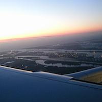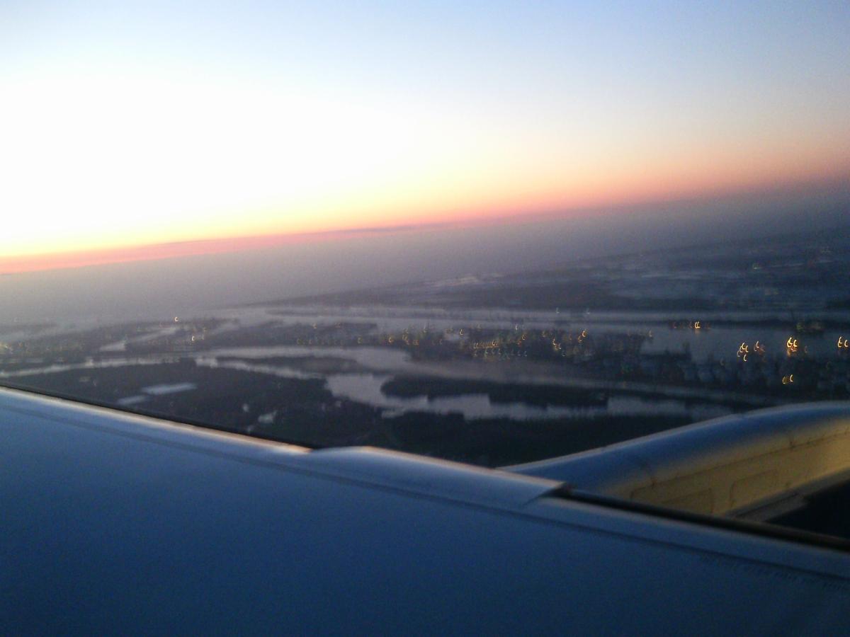 Dit is Rotterdam vanuit ons toestel, de Embraer 190 van British Airways om 21.45 uur, vlak voor de landing. Wij kwamen uit London op 5 mei jl.