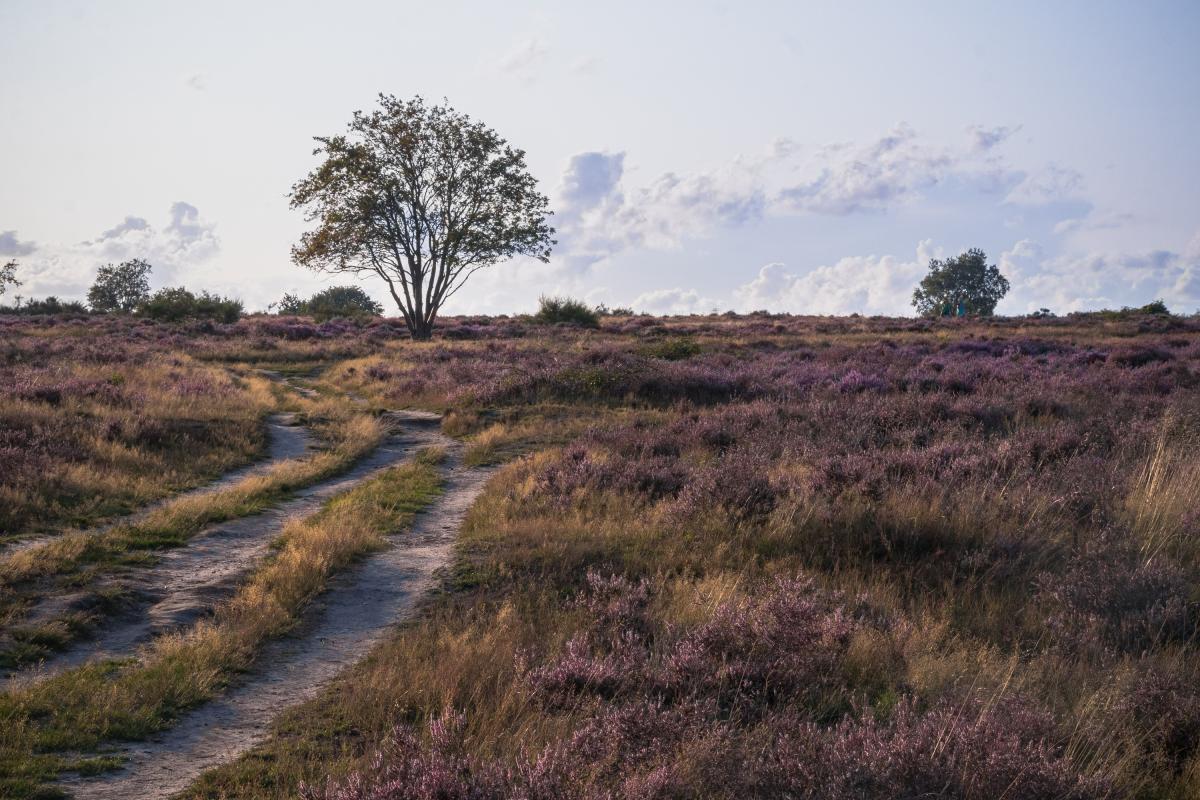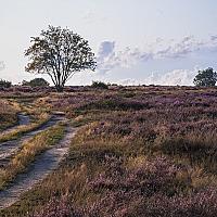 Zonsondergang op de heide, de meest mooie warme kleurtinten verschijnen.